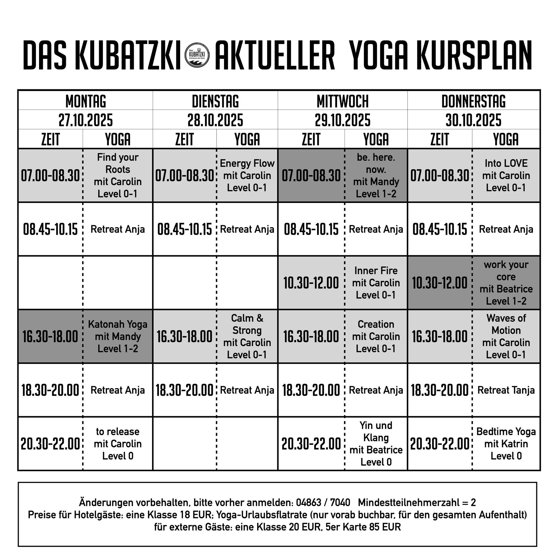 Aktueller Yogaplan