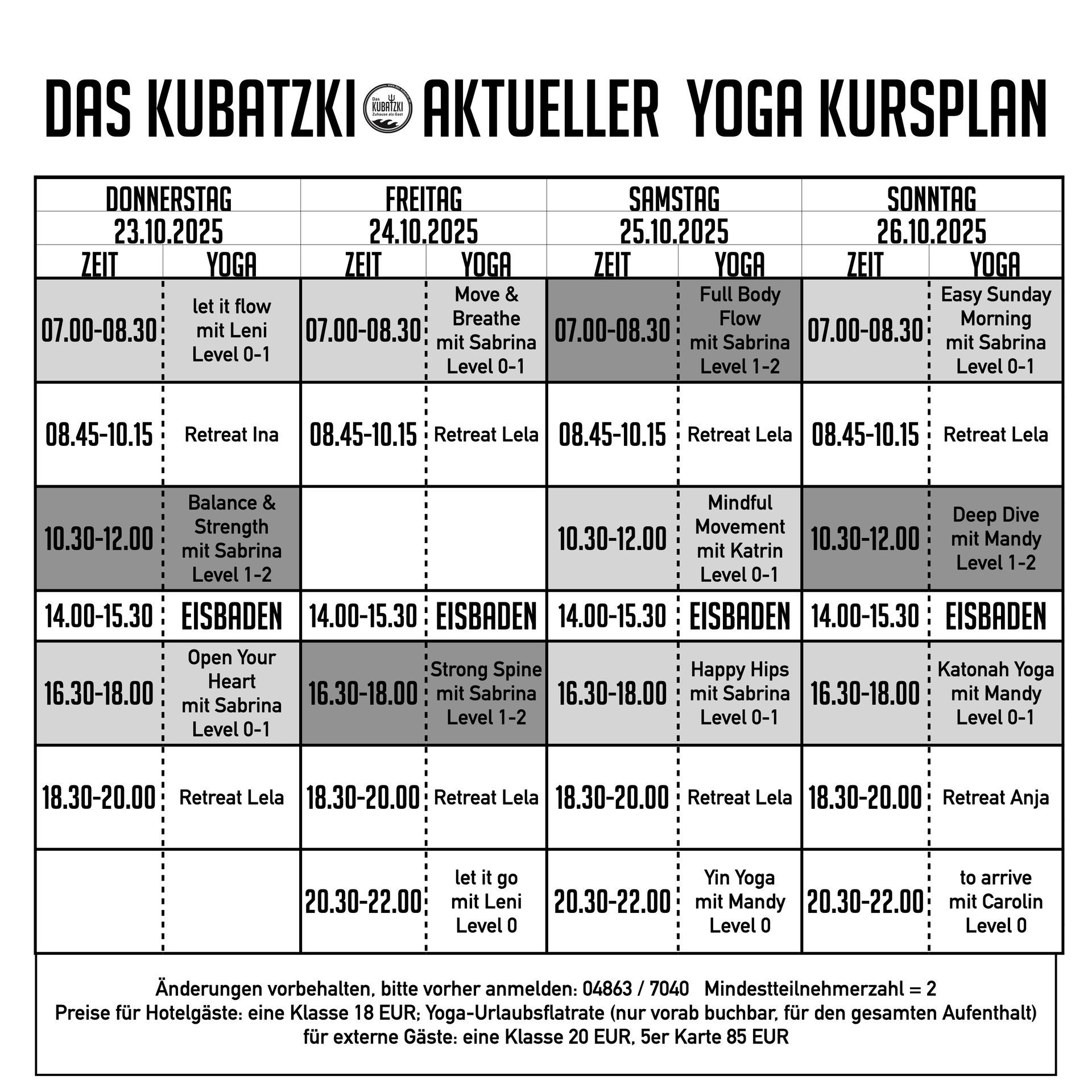 Aktueller Yogaplan