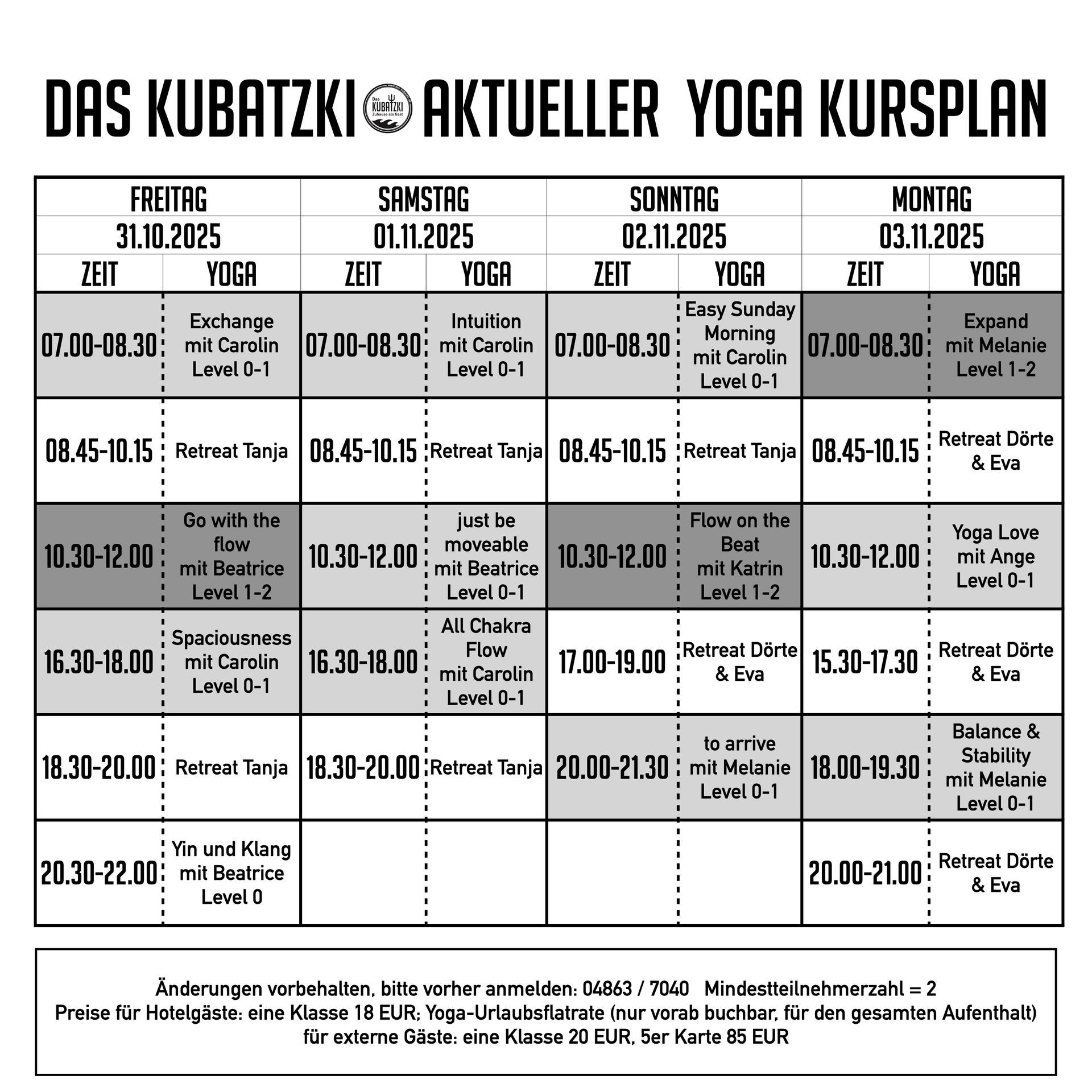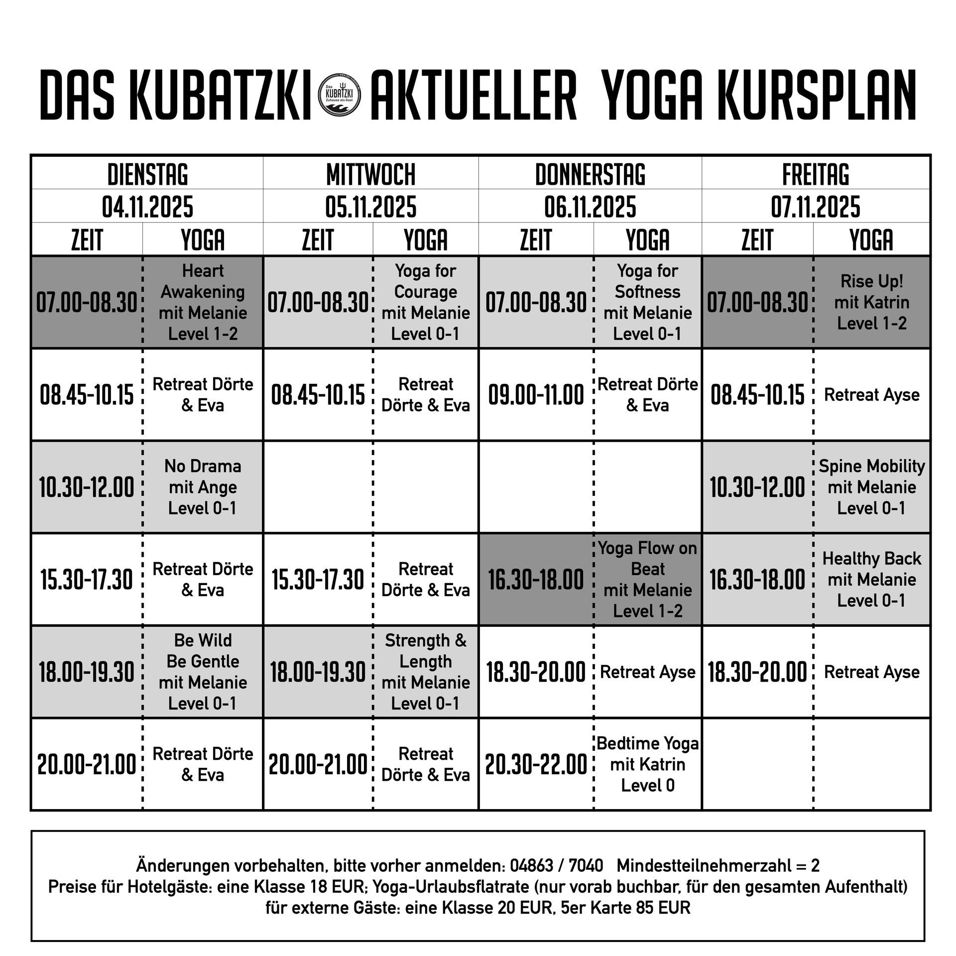Aktueller Yogaplan