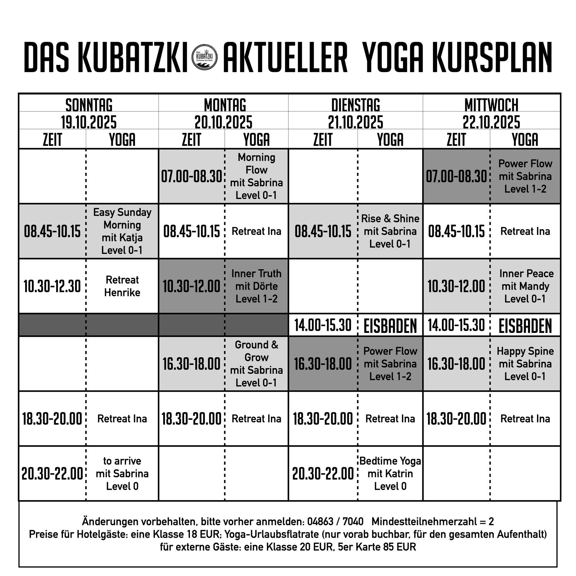 Aktueller Yogaplan